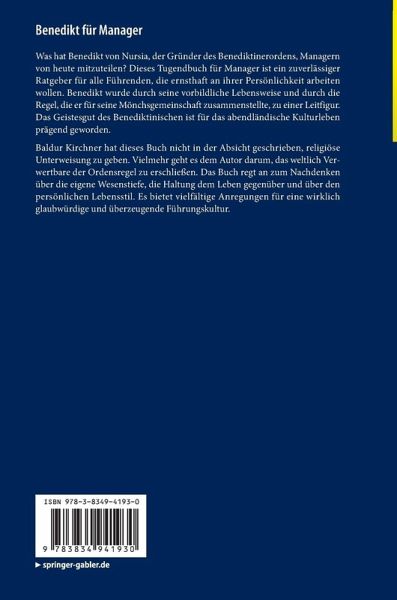 Baldur Kirchner hat dieses Buch nicht in der Absicht geschrieben, religiöse Unterweisung zu geben. Vielmehr geht es dem Autor darum, das weltlich Verwertbare der Ordensregel zu erschließen. Das Buch regt an zum Nachdenken über die eigene Wesenstiefe, die Haltung dem Leben gegenüber und den persönlichen Lebensstil. Es bietet vielfältige Anregungen für eine wirklich glaubwürdige und überzeugende Führungskultur.
