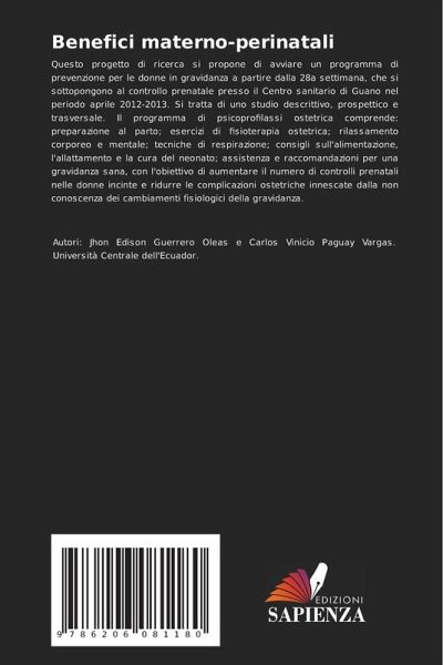 Questo progetto di ricerca si propone di avviare un programma di prevenzione per le donne in gravidanza a partire dalla 28a settimana, che si sottopongono al controllo prenatale presso il Centro sanitario di Guano nel periodo aprile 2012-2013. Si tratta di uno studio descrittivo, prospettico e trasversale. Il programma di psicoprofilassi ostetrica comprende: preparazione al parto; esercizi di fisioterapia ostetrica; rilassamento corporeo e mentale; tecniche di respirazione; consigli sull'alimentazione, l'allattamento e la cura del neonato; assistenza e raccomandazioni per una gravidanza sana, con l'obiettivo di aumentare il numero di controlli prenatali nelle donne incinte e ridurre le complicazioni ostetriche innescate dalla non conoscenza dei cambiamenti fisiologici della gravidanza.