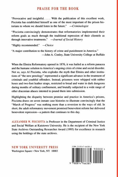 The opening, in 1876, of the Elmira Reformatory marked the birth of the American adult reformatory movement and the introduction of a new approach to crime and the treatment of criminals. Hailed as a reform panacea and the humane solution to America's ongoing crisis of crime and social disorder, Elmira sparked an ideological revolution. Repression and punishment were supposedly out. Academic and vocational education, military drill, indeterminate sentencing and parole?"benevolent reform"?were now considered instrumental to instilling in prisoners a respect for God, law, and capitalism. Not so, says Al Pisciotta, in this highly original, startling, and revealing work. Drawing upon previously unexamined sources from over a half-dozen states and a decade of research, Pisciotta explodes the myth that Elmira and other institutions of "the new penology" represented a significant advance in the treatment of criminals and youthful offenders. The much-touted programs failed to achieve their goals; instead, prisoners, under Superintendent Zebulon Brockway, considered the Father of American Corrections, were whipped with rubber hoses and two-foot leather straps, restricted to bread and water in dark dungeons during months of solitary confinement, and brutally subjected to a wide range of other draconian psychological and physical abuses intended to pound them into submission. Escapes, riots, violence, drugs, suicide, arson, and rape were the order of the day in these prisons, hardly conducive to the transformation of "dangerous criminal classes into Christian gentleman," as was claimed. Reflecting the racism and sexism in the social order in general, the new penology also legitimized the repression of the lower classes. Highlighting the disparity between promise and practice in America's prisons, Pisciotta draws on seven inmate case histories to illustrate convincingly that the "March of Progress" was nothing more than a reversion to the ways of old. In short, the adult reformatory movement promised benevolent reform but delivered benevolent repression?a pattern that continues to this day. A vital contribution to the history of crime, corrections, and criminal justice, this book will also have a major impact on our thinking about contemporary corrections and issues surrounding crime, punishment, and social control.