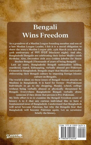 Many people often asked me what motivated me to write the first edition of "Reluctant Fathers." To be honest with the readers, I need to admit that it was not my intention to write or publish the first book in the first place. In October 2006, I promised myself that I would never talk to Bengalis about Bangladeshi politics. In 2018, I came to work in Alexandria, VA, for Block Advisor as a Tax Advisor. I was looking for a room to stay for the tax season next to a Masjid because, during the month of Ramadan, I frequently wanted to go to the Masjid, and for the last ten days, I was looking forward to staying in the Masjid. In the Masjid, the hot topic was Bengali and Bangabandhu, and people were generally hateful toward Pakistanis rather than engaging in studying the Quran. In the month of Ramadan, they should have been talking more about the merits of Ramadan; instead, they were busy discussing the greatness of Bengalis. It felt pretty disturbing to me. Secondly, I regularly went to a restaurant for lunch in Falls Church. In that restaurant again, Bengali and Bangabandhu were the highlights of all discussions, and the majority took part in hate speech against Pakistanis, which finally led me to make up my mind to write the book "Reluctant Fathers." I would like to remind those who skeptically believe that Pakistan ISI or Indian RAW financed me to publish the books. No, absolutely not. No one paid me to publish the book. I paid from my pocket. And those who skeptically believe that I am a Jaamati, for your information, I do not belong to any political parties or their political ideologies in Bangladesh or any part of the world. For that matter, I am an independent USA citizen and an ordinary Muslim born in a Muslim political family in Sylhet, Bangladesh. However, I am the grandson of a Muslim League founding member and son of a late Muslim League leader, and that specific political background compels me to write this book. The "Bengali Wins Freedom" reflects on past political issues in the Indian subcontinent. I would like to mention that I do not intend to hurt anyone's personal feelings or emotions in writing about political, social, economic, and religious issues. I just want to make the history straight. I intend to maintain an independent political perspective and neutrality free from political, religious, and cultural bias. That said, I am a born Muslim and have gained Islamic knowledge in the Aqeedah throughout my life, which might reflect, to some extent, in my writing. I wrote this book from whatever I heard in my childhood. Then, I verified it by researching in public libraries to correlate to my existing knowledge of Indian subcontinental politics and found documentaries on YouTube and Google about Indian, Pakistani, and Bangladeshi political issues, actors, and events. I am confident this book is a practical and accurate historical political issue for both countries, Pakistan and Bangladesh,