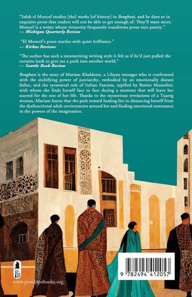 Benghazi is an odyssey into the mental universe of Mariam Khaldoon, a Libyan teenager confronted with a life-changing emotional crisis. The story is centered around the power exerted over Mariam by two powerful men: her father, and the Fascist Italian leader Benito Mussolini. Between the omnipotent family patriarch who makes an unjust decision that throws her existence into turmoil, and the heartless Italian tyrant ruling over Libya with an iron fist, the highly gifted and insightful adolescent must forge a path for herself and find a way to overcome the trauma inflicted upon her by a harsh social milieu and an aloof father.…mehr
