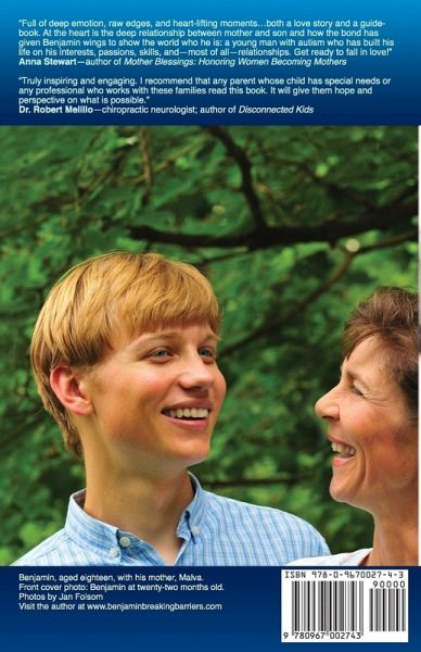A fascinating memoir of a mother helping her autistic son to overcome his challenges; a success story that covers the journey from infancy to adulthood, and illustrates how love, determination, and hard work can conquer all. Written to have broad audience appeal, this book is simultaneously a valuable autism/special-needs resource for parents and professionals. It is filled with inspiring, creative ideas, and includes reader resources such as thought-provoking discussion questions and an index of the therapeutic interventions/attitudes discussed throughout the text. Benjamin, the focal subject of the story, has become a rising star in the world of public speaking, has been featured on TV and in various news stories, and is making a real impact in the communities that invite him to speak. His story encourages listeners to overcome their own barriers as well as educating them to have a more compassionate viewpoint towards those who are ¿different.¿ Benjamin¿s message reaches far beyond the bounds of autism, and so does this book, as is evidenced by the glowing advance praise provided by recognized names such as Rosalind Wiseman (NY Times bestselling author), Temple Grandin (world-famous autistic and author), Dr. Robert Melillo (bestselling author and co-founder of Brain Balance Centers), and others.