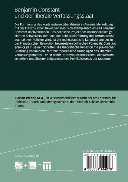 Die Formierung des kontinentalen Liberalismus in Auseinandersetzung mit der Französischen Revolution lässt sich exemplarisch am Fall Benjamin Constant nachvollziehen. Das politische Projekt des kosmopolitisch gesinnten Schweizers, der nach der Schlüsselerfahrung des Terrors selbst auch aktiver Politiker wird, ist die rechtsstaatliche Kanalisierung des in der Französischen Revolution freigesetzten politischen Potentials. Constant entwickelt in seinen Schriften, die theoretische Reflexion mit praktischer Erfahrung verknüpfen, zentrale theoretische Grundlagen des liberalen Verfassungsstaates - er ist damit Prototyp des modernen Politikwissenschaftlers und ältester Zeitgenosse des Politikdiskurses der Moderne.