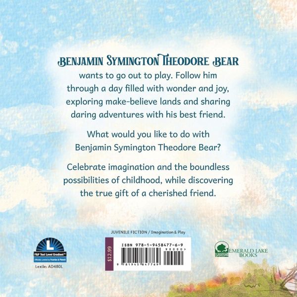 Benjamin Symington Theodore Bear wants to go out to play. Follow him through a day filled with wonder and joy, exploring make-believe lands, fighting fierce dragons, and sharing daring adventures with his best friend. Celebrate imagination and the boundless possibilities of childhood, while discovering the true gift of a cherished friend in Benjamin Symington Theodore Bear. With captivating rhymes and stunning illustrations, this charming tale ignites young minds and warms hearts of all ages. It's perfect for bedtime stories or daytime adventures. And when their story is over, yours is just beginning! Make believe with your favorite child and share what you would like to do on a day with Benjamin Symington Theodore Bear. Get ready to join the journey of a lifetime, where love, laughter and friendship await at every turn of the page. If you enjoy books like Winnie the Pooh, Corduroy and The Adventures of Paddington Bear, you'll adore this heartwarming tale of friendship and imagination.