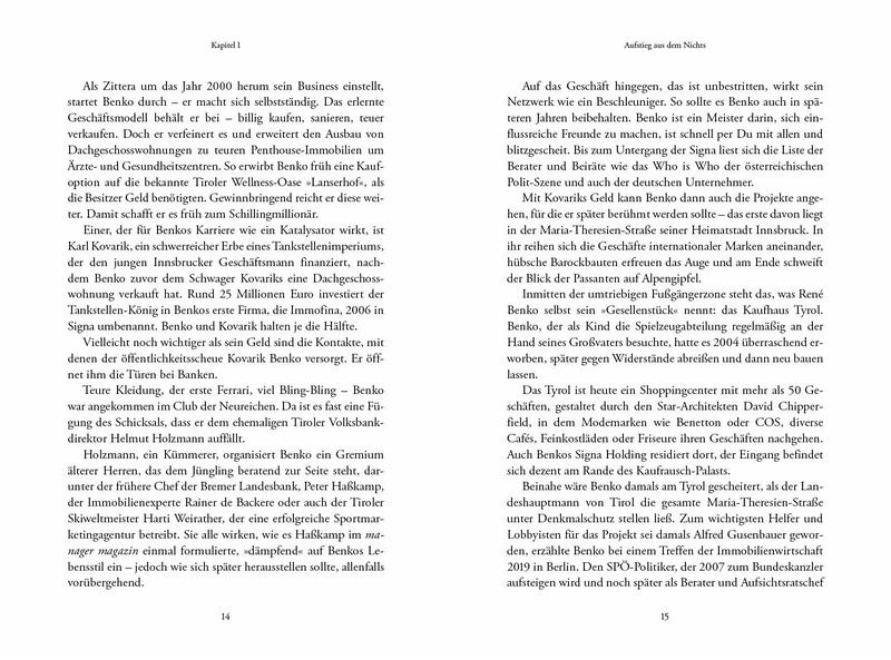 Die Autoren schaffen es, die komplexen Sachverhalte rund um die Insolvenz der Signa-Gruppe so darzustellen, dass sie auch für Leser ohne wirtschaftlichen Hintergrund gut nachvollziehbar sind. Gleichzeitig gelingt es ihnen, die dramatischen Entwicklungen mitreißend zu schildern, sodass man das Buch kaum aus der Hand legen möchte. Noch ist nicht abzuschätzen, welche Langzeitfolgen diese Pleite haben wird.