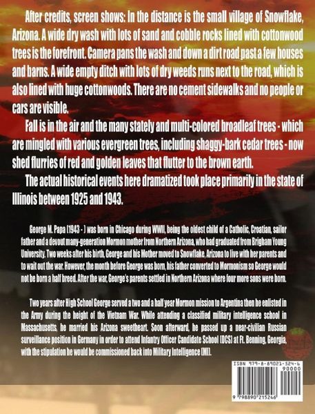 To learn more about George, watch interviews and learn of his upcoming projects, please visit his website: www.georgempapa.com. See first video at: https: //www.youtube.com/watch?v=xIcoqylUVkgGeorge M. Papa (1943 - ) was born in Chicago during WWII, being the oldest child of a Catholic, Croatian, sailor father and a devout many-generation Mormon mother from Northern Arizona, who had graduated from Brigham Young University. Two weeks after his birth, George and his Mother moved to Snowflake, Arizona to live with her parents and to wait out the war. However, the month before George was born, his father converted to Mormonism so George would not be born a half breed. After the war, George's parents settled in Northern Arizona where four more sons were born.Two years after High School George served a two and a half year Mormon mission to Argentina then he enlisted in the Army during the height of the Vietnam War. While attending a classified military intelligence school in Massachusetts, he married his Arizona sweetheart. Soon afterward, he passed up a near-civilian Russian surveillance position in Germany in order to attend Infantry Officer Candidate School (OCS) at Ft. Benning, Georgia, with the stipulation he would be commissioned back into Military Intelligence (MI).After OCS and due to heavy officer losses in Vietnam, George was not commissioned back into Military Intelligence but rather into the Infantry where he had been trained. Twenty years later, George wrote his first book entitled "The Conclusion", in which he takes the audience on a couple of search and destroy missions out in the jungle then culminates in the only time in the entire Vietnam War that a U.S. Battalion Headquarters got completely overrun, which was his battalion at a place called LZ Mary Ann.After Vietnam, George became a real estate broker and developer. He and his wife have six children and ten grandchildren. George has a passion for writing motion picture screenplays. What drives him in this regard is that he loves outstanding movies but they are way too few and far between.His first screenplay was copyrighted in 1990 but it just sat on the shelf because nobody in Hollywood had any interest in putting it on the big screen. Undaunted, George wrote fifteen more screenplays and has plans to do several more. Four of these now appear on this author page. All of George's books are in the form of high action, blockbuster-type epic screenplays complete with dozens of photos or paintings to illustrate the scenes depicted.