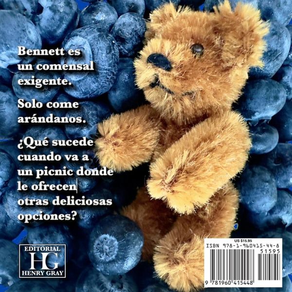 Bennett es un joven oso que vive en el pueblo de los osos, en una acogedora guarida junto a su madre, su padre y su abuela. Un día, su familia lo lleva a un picnic en la pradera verde con otras familias de osos, donde se sirven salmón, hojas de eucalipto, nueces, pasas, plátanos y pasteles de chocolate. Pero hay un solo problema: ¡Bennett solo quiere comer arándanos! ¿Cómo afrontará su familia a este comensal tan exigente? Descúbrelo en Bennett Solo Comerá Arándanos, un libro ilustrado para niños de 2 a 6 años, contado a través de fotos de osos de juguete antiguos en encantadores dioramas. ¡Encarga el tuyo hoy mismo!