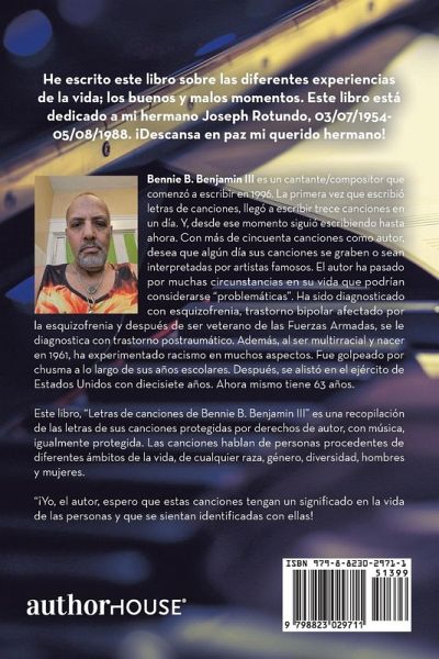 He escrito este libro sobre las diferentes experiencias de la vida; los buenos y malos momentos. Este libro está dedicado a mi hermano Joseph Rotundo, 03/07/1954- 05/08/1988. ¡Descansa en paz mi querido hermano!