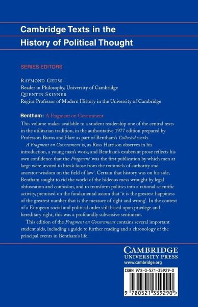 This volume makes available to a student readership one of the central texts in the utilitarian tradition, in the authoritative 1977 edition prepared by Professors Burns and Hart as part of Bentham's Collected works.