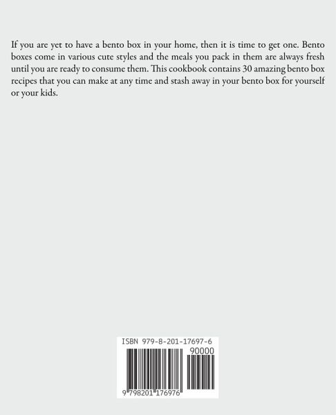 If you are yet to have a bento box in your home, then it is time to get one. Bento boxes come in various cute styles and the meals you pack in them are always fresh until you are ready to consume them. This cookbook contains 30 amazing bento box recipes that you can make at any time and stash away in your bento box for yourself or your kids.
