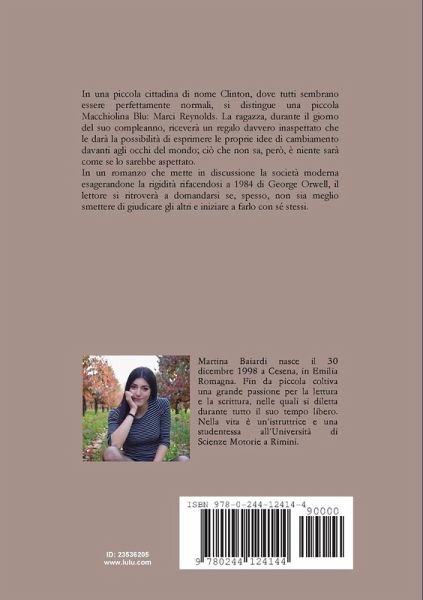 In una piccola cittadina di nome Clinton, dove tutti sembrano essere perfettamente normali, si distingue una piccola Macchiolina Blu: Marci Reynolds. La ragazza, durante il giorno del suo compleanno, riceverà un regalo davvero inaspettato che le darà la possibilità di esprimere le proprie idee di cambiamento davanti agli occhi del mondo; ciò che non sa, però, è che niente sarà come se lo sarebbe aspettato. In un romanzo che mette in discussione la società moderna esagerandone la rigidità rifacendosi a 1984 di George Orwell, il lettore si ritroverà a domandarsi se, spesso, non sia meglio smettere di giudicare gli altri e iniziare a farlo con sé stessi.