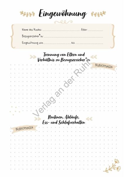 Organisationshilfe für Erzieher und Erzieher in Kita, Krippe und Tagespflege - Eingewöhnung praktisch dokumentiert +++Der "Beobachtungsblock für die Eingewöhnung in Kita, Krippe und Tagespflege" ist der perfekte Begleiter für alle Erzieher_innen. Mit seinem praktischen Design und den vielen Feldern zum Ankreuzen, Eintragen und Ergänzen ist er ideal geeignet, um die Eingewöhnung von Kindern in Kita, Krippe und Tagespflege zu dokumentieren. Im Elterngespräch liefern die Notizen eine sowohl wertvolle als auch optisch ansprechende Gesprächsgrundlage. Mit unserem Notizblock haben Erzieher_innen alles im Griff und können sich auf das Wichtigste konzentrieren: die Kinder und ihre Entwicklung. Bestellen Sie jetzt unseren "Beobachtungsblock für die Eingewöhnung in Kita, Krippe und Tagespflege" und erleichtern Sie sich damit die Arbeit in der Kinderbetreuung.