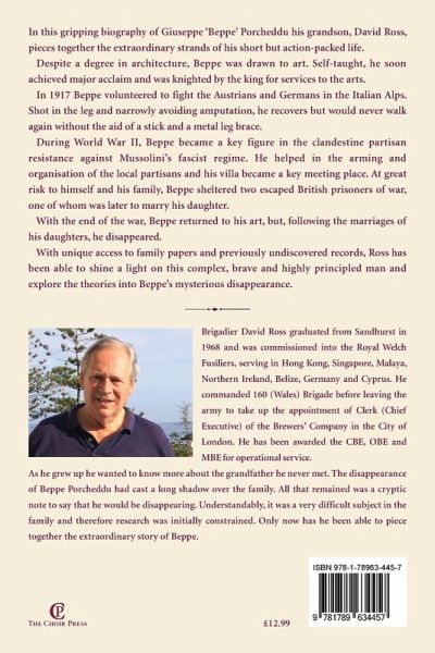 In this gripping biography of Giuseppe (Beppe) Porcheddu his grandson, David Ross, pieces together the extraordinary strands of his short but action-packed life. Beppe was born into a prosperous family in Turin, Italy. His father, however, had been born in poverty but became one of Italy's greatest construction engineers. In 1917 Beppe volunteered to join the Alpine troops to fight the Austrians and Germans in the Italian Alps. Nearly killed by a grenade he made a miraculous recovery but could only walk with the aid of a stick. Despite a degree in architecture he was drawn to art. Self-taught, he soon achieved major acclaim and aged 27 he was knighted by the King for services to the arts. Marriage followed but with the rise of Mussolini, his anti-fascist views led to exile in France for him and his family. Returning to Italy during the build up to World War II, he relocated to the Italian Riviera where he was less well-known. Hiding his anti-fascism he became a key figure in the clandestine partisan resistance. He helped in the arming and organisation of the local partisans and his villa became a key meeting place. At great risk to himself and his family, Beppe sheltered two British Army officers who were escaped prisoners-of-war, one of whom was later to marry his daughter. Surviving arrest and interrogation by the Fascists, Beppe continued his partisan activities. With the end of the war, Beppe returned to his art but following the marriages of his daughters, he disappeared. With unique access to family papers and previously undiscovered records and letters, Ross has been able to shine a light on this complex, brave and highly-principled man and explore the theories into Beppe's mysterious disappearance.