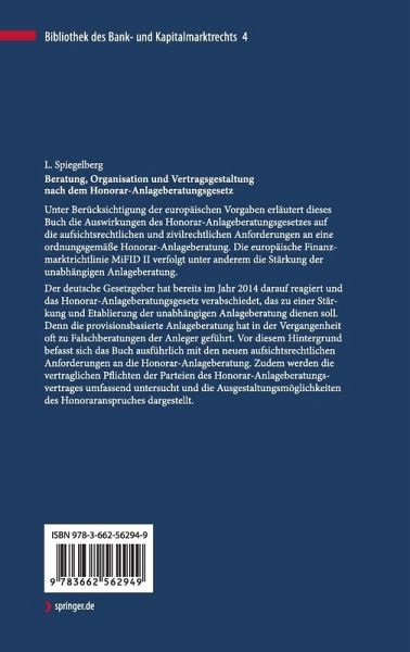 Unter Berücksichtigung der europäischen Vorgaben erläutert dieses Buch die Auswirkungen des Honorar-Anlageberatungsgesetzes auf die aufsichtsrechtlichen und zivilrechtlichen Anforderungen an eine ordnungsgemäße Honorar-Anlageberatung. Die europäische Finanzmarktrichtlinie MiFID II verfolgt unter anderem die Stärkung der unabhängigen Anlageberatung. Der deutsche Gesetzgeber hat bereits im Jahr 2014 darauf reagiert und das Honorar-Anlageberatungsgesetz verabschiedet, das zu einer Stärkung und Etablierung der unabhängigen Anlageberatung dienen soll. Denn die provisionsbasierte Anlageberatung hat in der Vergangenheit oft zu Falschberatungen der Anleger geführt. Vor diesem Hintergrund befasst sich das Buch ausführlich mit den neuen aufsichtsrechtlichen Anforderungen an die Honorar-Anlageberatung. Zudem werden die vertraglichen Pflichten der Parteien des Honorar-Anlageberatungsvertrages umfassend untersucht und die Ausgestaltungsmöglichkeiten des Honoraranspruches dargestellt.