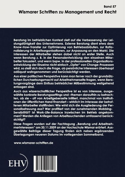 Beratung im betrieblichen Kontext zielt auf die Verbesserung der Leistungsfähigkeit des Unternehmens. Externe Beratung dient etwa dem Know-How-Transfer zur Optimierung von Betriebsabläufen, zur Rationalisierung in Arbeitsorganisationen, zur Anpassung an den Markt. Die Interessen der Mitarbeiter stehen dabei nicht an erster Stelle. Auch wenn Beratung z. B. in der Personalentwicklung den einzelnen Mitarbeiter fokussiert, und wenn bspw. in der professionellen Organisationsentwicklung der Einzelne nicht einfach Opfer von Change-Prozessen wird, so stellt sich doch die Frage, ob persönliche Interessen überhaupt adäquat wahrgenommen und berücksichtigt werden. Aus einer politischen Perspektive kann man ferner nach der grundsätzlichen Durchsetzungsmacht auf Arbeitnehmerseite fragen, wenn Beratungsvorgänge dem Einfluss betrieblicher Mitbestimmung weitgehend entzogen sind. Auch aus wissenschaftlicher Perspektive ist es von Interesse, ausgewählte konkrete Beratungssettings und themen daraufhin zu betrachten, ob sie oft von Arbeitgeberseite initiiert, manchmal von Institutionen der öffentlichen Hand finanziert wirklich im Interesse der betroffenen Mitarbeiter stattfinden: Wie wirkt sich die Ausgliederung der Personalbetreuung aus? Wer profitiert von der zunehmenden Mobbing-Sensibilität? Ist Work-Life-Balance inzwischen im Betrieb angekommen? Werden die Anliegen von Arbeitssuchenden umfassend berücksichtigt? Diese Fragen wurden auf der Fachtagung Beratung und Arbeitnehmerinteressen am 20.11.2009 an der Hochschule Wismar erörtert. Ausgewählte Beiträge dieser Tagung finden sich neben ergänzenden Überlegungen neueren Datums im vorliegenden Sammelband.