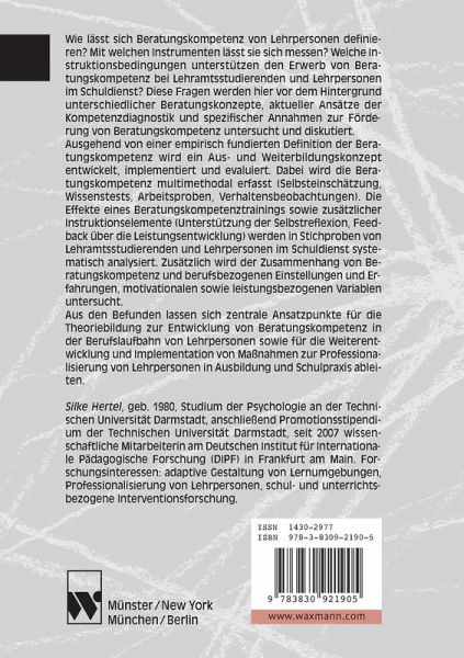 Wie lässt sich Beratungskompetenz von Lehrpersonen definieren? Mit welchen Instrumenten lässt sie sich messen? Welche Instruktionsbedingungen unterstützen den Erwerb von Beratungskompetenz bei Lehramtsstudierenden und Lehrpersonen im Schuldienst? Diese Fragen werden hier vor dem Hintergrund unterschiedlicher Beratungskonzepte, aktueller Ansätze der Kompetenzdiagnostik und spezifischer Annahmen zur Förderung von Beratungskompetenz untersucht und diskutiert. Ausgehend von einer empirisch fundierten Definition der Beratungskompetenz wird ein Aus- und Weiterbildungskonzept entwickelt, implementiert und evaluiert. Dabei wird die Beratungskompetenz multimethodal erfasst (Selbsteinschätzung, Wissenstests, Arbeitsproben, Verhaltensbeobachtungen). Die Effekte eines Beratungskompetenztrainings sowie zusätzlicher Instruktionselemente (Unterstützung der Selbstreflexion, Feedback über die Leistungsentwicklung) werden in Stichproben von Lehramtsstudierenden und Lehrpersonen im Schuldienst systematisch analysiert. Zusätzlich wird der Zusammenhang von Beratungskompetenz und berufsbezogenen Einstellungen und Erfahrungen, motivationalen sowie leistungsbezogenen Variablen untersucht. Aus den Befunden lassen sich zentrale Ansatzpunkte für die Theoriebildung zur Entwicklung von Beratungskompetenz in der Berufslaufbahn von Lehrpersonen sowie für die Weiterentwicklung und Implementation von Maßnahmen zur Professionalisierung von Lehrpersonen in Ausbildung und Schulpraxis ableiten.