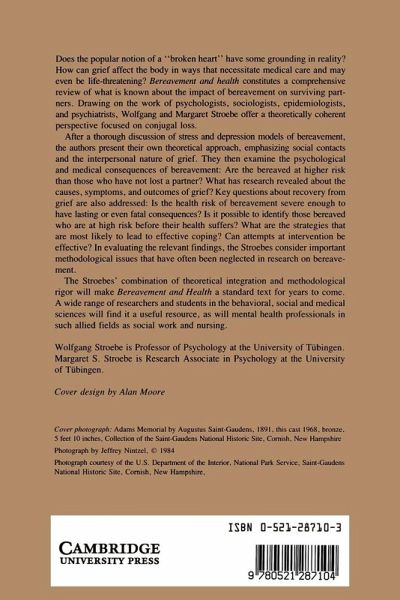 Bereavement and Health constitutes a comprehensive review of what is known about the impact of bereavement on surviving partners. Drawing on the work of psychologists, sociologists, epidemiologists, and psychiatrists, Wolfgang and Margaret Stroebe offer a theoretically coherent perspective focused on conjugal loss.
