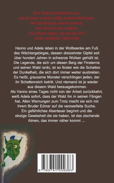 Den Wald zu betreten war, als ob man in eine völlig andere Welt kam. Die Geräusche waren anders, der Geruch war anders, es schien sogar, als ob die Zeit einen anderen Takt hatte.Hanno und Adela leben in der Wolfssenke am Fuß des Wächtergebirges, dessen dreizehnter Gipfel seit über hundert Jahren in schwarze Wolken gehüllt ist. Die Legende, die sich um diesen Berg der Finsternis und seinen Wald rankt, ist so finster wie die Schatten der Dunkelheit, die sich dort immer weiter ausbreiten. Es heißt, grausame Monster verschlingen jeden, der ihr Schattenreich betritt. Und niemand ist je wieder aus diesem Wald herausgekommen.Als Hanno eines Tages nicht von der Arbeit zurückkehrt, weiß Adela sofort, dass der Wald ihn in seinen Fängen hat. Allen Warnungen zum Trotz macht sie sich mit ihrem Bruder Edmar auf die verzweifelte Suche. Ein gefährliches Abenteuer beginnt und die einzige Gewissheit die sie haben, ist das zischende Atmen, das immer näher kommt...