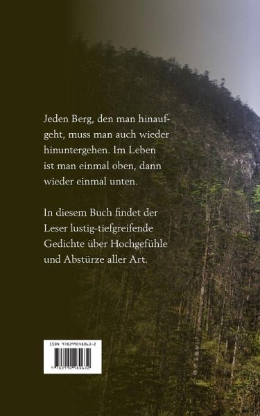 Jeden Berg, den man hinaufgeht, muss man auch wieder hinuntergehen. Im Leben ist man einmal oben, dann wieder einmal unten. In diesem Buch findet der Leser lustig-tiefgreifende Gedichte über Hochgefühle und Abstürze aller Art.