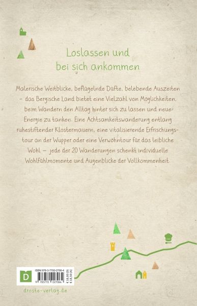 Malerische Weitblicke, beflügelnde Düfte, belebende Auszeiten - das Bergische Land bietet eine Vielzahl von Möglichkeiten, beim Wandern den Alltag hinter sich zu lassen und neue Energie zu tanken. Eine Achtsamkeitswanderung entlang ruhestiftender Klostermauern, eine vitalisierende Erfrischungstour an der Wupper oder eine Verwöhntour für das leibliche Wohl - jede der 20 Wanderungen schenkt individuelle Wohlfühlmomente und Augenblicke der Vollkommenheit.Unsere Wanderbücher bieten echte Wohlfühlwege für jede Stimmung. Mit eindrucksvollen Fotos, berührenden Texten und abwechslungsreichen Touren wird jede Wanderung zum besonderen Erlebnis. Entspannung und Inspiration garantiert - ideal auch als Geschenk!