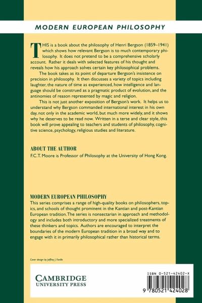 This is a book about the philosophy of Henri Bergson (1859-1941) which shows how relevant Bergson is to much contemporary philosophy. It does not pretend to be a comprehensive scholarly account. Rather it deals with selected features of his thought and reveals how his approach solves certain key philosophical problems.