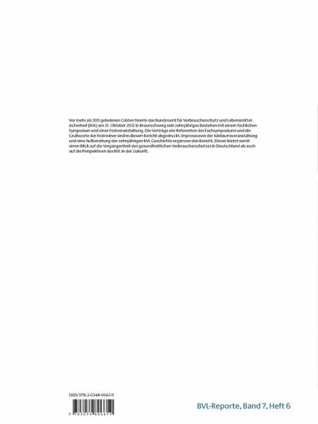 Vor mehr als 300 geladenen Gästen feierte das Bundesamt für Verbraucherschutz und Lebensmittelsicherheit (BVL) am 31. Oktober 2012 in Braunschweig sein zehnjähriges Bestehen mit einem fachlichen Symposium und einer Festveranstaltung. Die Vorträge der Referenten des Fachsymposiums und die Grußworte der Festredner sind in diesem Bericht abgedruckt. Impressionen der Jubiläumsveranstaltung und eine Aufbereitung der zehnjährigen BVL-Geschichte ergänzen den Bericht. Dieser bietet somit einen Blick auf die Vergangenheit des gesundheitlichen Verbraucherschutzes in Deutschland als auch auf die Perspektiven des BVL in der Zukunft.