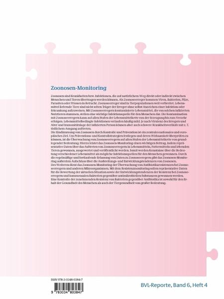 Zoonosen sind Krankheiten bzw. Infektionen, die auf natürlichem Weg direkt oder indirekt zwischen Menschen und Tieren übertragen werden können. Mit Zoonoseerregern kontaminierte Lebensmittel stellen eine wichtige Infektionsquelle für den Menschen dar. Beim Zoonosen-Monitoring werden repräsentative Daten über das Auftreten von Zoonoseerregern in Lebensmitteln, Futtermitteln und lebenden Tieren erfasst, ausgewertet und veröffentlicht. Weiterhin dient das Zoonosen-Monitoring der Überwachung von Antibiotikaresistenzen bei Zoonoseerregern und anderen Mikroorganismen.