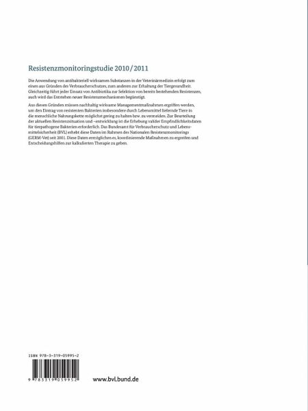 Aus diesen Gründen müssen nachhaltig wirksame Managementmaßnahmen ergriffen werden, um den Eintrag von resistenten Bakterien insbesondere durch Lebensmittel liefernde Tiere in die menschliche Nahrungskette möglichst gering zu halten bzw. zu vermeiden. Zur Beurteilung der aktuellen Resistenzsituation und -entwicklung ist die Erhebung valider Empfindlichkeitsdaten für tierpathogene Bakterien erforderlich. Das Bundesamt für Verbraucherschutz und Lebensmittelsicherheit (BVL) erhebt diese Daten im Rahmen des Nationalen Resistenzmonitorings (GERM-Vet) seit 2001. Diese Daten ermöglichen es, koordinierende Maßnahmen zu ergreifen und Entscheidungshilfen zur kalkulierten Therapie zu geben.