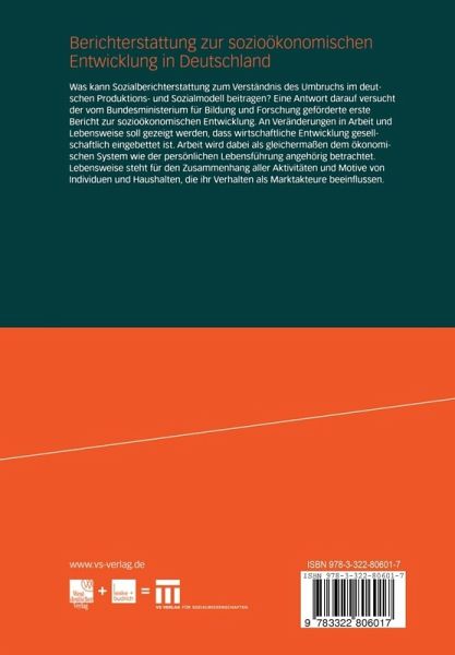 Was kann Sozialberichterstattung zum Verständnis des Umbruchs im deutschen Produktions- und Sozialmodell beitragen? Eine Antwort darauf versucht der vom Bundesministerium für Bildung und Forschung geförderte erste Bericht zur sozioökonomischen Entwicklung. An Veränderungen in Arbeit und Lebensweise soll gezeigt werden, dass wirtschaftliche Entwicklung gesellschaftlich eingebettet ist. Arbeit wird dabei als gleichermaßen dem ökonomischen System wie der persönlichen Lebensführung angehörig betrachtet. Lebensweise steht für den Zusammenhang aller Aktivitäten und Motive von Individuen und Haushalten, die ihr Verhalten als Marktakteure beeinflussen.