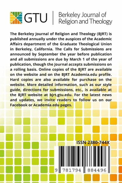 Berkeley Journal of Religion and Theology, Vol. 7, no. 1. This is a regular issue featuring: - 2020 Distinguished Faculty Lecture by Eduardo C. Fernández, S.J. - 2020 Distinguished Faculty Lecture Response by Judith Berling - 2020 Surjit Singh Lecture by Jacob K. Olupona - 2021 Reading of the Sacred Texts Lecture by Kathryn R. Barush - 2021 Borsch-Rast Lecture by Devin P. Zuber - Articles by Maddie LaForge, Jaesung Ryu, Kevin Sneed, Ronald L. Boyer - Special Project: Koret Fellowship in Interreligious and Intercultural Facilitation - Three Book Reviews