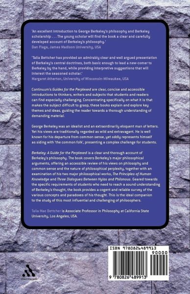 George Berkeley was an idealist and an extraordinarily eloquent man of letters. Yet his views are traditionally regarded as wild and extravagant. He is well known for his departure from common sense, yet perversely represents himself as siding with 'the common folk', presenting a complex challenge for students. Berkeley: A Guide for the Perplexed covers the whole range of Berkeley's philosophical work, offering an accessible review of his views on philosophy and common sense and the nature of philosophical perplexity, together with an examination of his two major philosophical works, The Principles of Human Knowledge and Three Dialogues Between Hylas and Philonous. Geared towards the specific requirements of students who need to have a sound understanding of Berkeley's thought, the book provides a cogent and reliable survey of the various concepts and paradoxes of his thought. This is the ideal companion to the study of this most influential and challenging of philosophers.