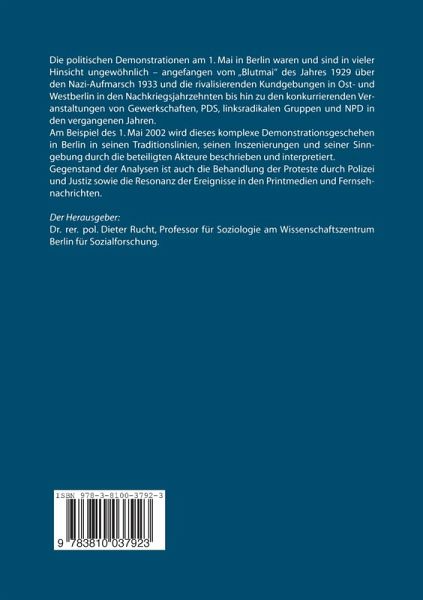 Die politischen Demonstrationen am 1. Mai in Berlin waren und sind in vieler Hinsicht ungewöhnlich- angefangen vom "Blutmai" des Jahres 1929 über den Nazi-Aufmarsch 1933 und die rivalisierenden Kundgebungen in Ost- und Westberlin in den Nachkriegsjahrzehnten bis hin zu den konkurrierenden Veranstaltungen von Gewerkschaften, PDS, linksradikalen Gruppen und NPD in den vergangenen Jahren. Am Beispiel des 1. Mai 2002 wird dieses komplexe Demonstrationsgeschehen in Berlin in seinen Traditionslinien, seinen Inszenierungen und seiner Sinngebung durch die beteiligten Akteure beschrieben und interpretiert. Gegenstand der Analysen ist auch die Behandlung der Proteste durch Polizei und Justiz sowie die Resonanz der Ereignisse in den Printmedien und Fernsehnachrichten.