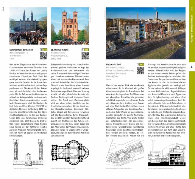 Wechselvolle politische Verhältnisse und einander ablösende Ideologien haben sich an keinem anderen Ort in Europa derart tief eingeschrieben wie in Berlin. Die deutsche Hauptstadt ermöglicht einen buchstäblichen Gang durch die Architektur- und Städtebaugeschichte: vom mittelalterlichen Alt-Berlin entlang der ehemaligen Berliner Mauer bis in die Gegenwart. In neun Spaziergängen stellt dieser Architekturführer eine individuelle Auswahl bauhistorischer Höhepunkte zwischen dem Olympiastadion im Westen und der Karl-Marx-Allee im Osten vor. Mit seinem umfangreichen Kartenmaterial und den vollformatigen Luftbildern ist dieser Führer ein idealer Wegbegleiter zur architektonischen Entdeckung Berlins. ¿ Unter den Linden ¿ Friedrichstraße ¿ Stadtkern ¿ Entlang der ehemaligen Mauer ¿ Karl-Marx-Allee ¿ Spreebogen ¿ Kurfürstendamm ¿ Ernst-Reuter-Platz und Hansaviertel ¿ Messe und Olympia