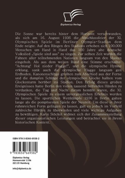 Die Sonne war bereits hinter dem Horizont verschwunden, als sich am 16. August 1936 die Abschlussfeier der XI. Olympischen Spiele im Berliner Olympia-Stadion dem Ende neigte. Auf den Rängen des Stadions erhoben sich 100.000 Menschen um Hand in Hand das 100 Jahre alte deutsche Volkslied Spiele sind aus zu singen. Zur selben Zeit wurden die Fahnen aller teilnehmenden Nationen langsam von den Masten eingeholt. Als aus dem weiten Rund eine Stimme erschallte: "Achtung! Hol nieder Flagge!", und die olympische Hymne erklang, sank auch die olympische Flagge langsam gen Erdboden. Kanonenschläge grollten zum Abschied aus der Ferne und die dumpfen Schläge der olympischen Glocke hallten vom Glockenturm herüber ins Stadion. Den Erfolg dieses großen Ereignisses hatte Berlin den vielen tausend helfenden Händen zu verdanken, die Tag und Nacht darum bemüht waren, die XI. Olympischen Spiele zu einem unvergesslichen Erlebnis werden zu lassen. Die sportlichen Wettkämpfe 1936 in Berlin galten lange als die pompösesten Spiele der Neuzeit. Um diese in ihrer ruhmreichen Form gelingen zu lassen, galt es jedoch im Vorfeld zahlreiche Hürden zu überwinden und viele wichtige Aufgaben zu bewältigen.