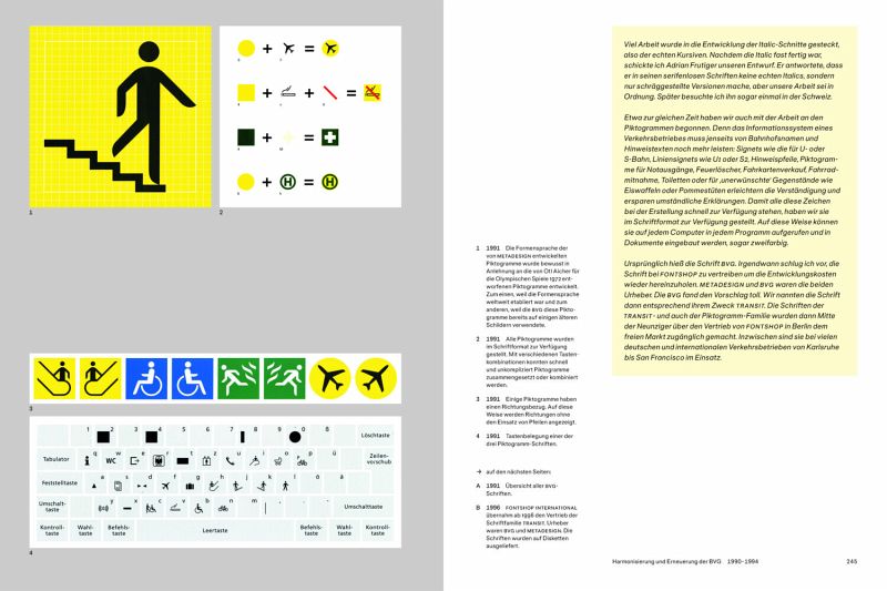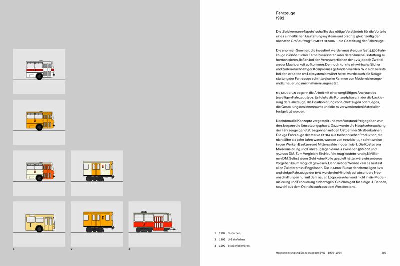 Lars Krüger is a designer and founder of the agencies diesdas.digital and DE.design. His master's thesis at the University of Applied Sciences in Düsseldorf, which focused on redesigning BVG's passenger guidance system and visual identity, was the foundation for this book. Bodo Baumgardt played a key role in implementing the new visual identity and passenger guidance system as the deputy marketing director of BVG during the first years of German reunification. In 1992, he joined MetaDesign, and in 1995, he cofounded Baumgardt Consultants with Rolf Baumgardt. Erik Spiekermann is a designer, typographer, author, and founder of MetaDesign and EdenSpiekermann. An honorary professor at the University of the Arts in Bremen and professor emeritus at the Berlin University of the Arts, he also holds an honorary doctorate from the Art Center College of Design in Pasadena and is a Royal Designer at London's Royal Society of Arts. Since 2013, he has run the p98a printing workshop in Berlin. Axel Mauruszat founded the transportation planning office Agentur BahnStadt in 1997. He joined BVG in 2001 and has been a member of the editorial board of Verkehrsgeschichtliche Blätter since 2008. In addition to publishing several books about BVG, he has led the company's historical archive since 2018.