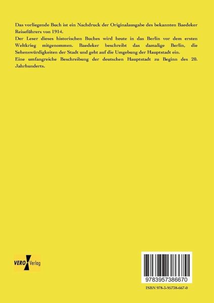 Der Leser dieses historischen Buches wird heute in das Berlin vor dem ersten Weltkrieg mitgenommen. Baedeker beschreibt das damalige Berlin, die Sehenswürdigkeiten der Stadt und geht auf die Umgebung der Hauptstadt ein.