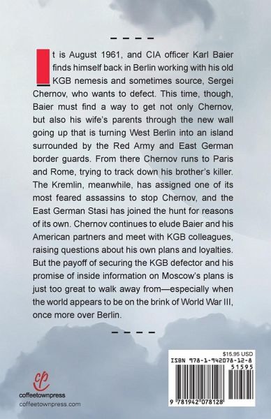 August, 1961: CIA officer Karl Baier is back in Berlin just as the Wall is going up and the world appears to be on the brink of a new war. Baier must help a KGB defector escape East Berlin and find his brother's killers in return for information on Moscow's plans, but with a Soviet assassin and the East Germans on their trail-all while his wife's parents are trying to flee East Germany.