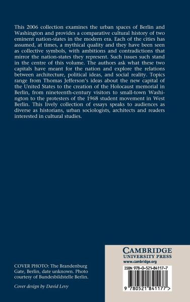 This collection examines the urban spaces of Berlin and Washington and provides a comparative cultural history of two eminent nation-states in the modern era. Each of the cities has assumed, at times, a mythical quality and they have been seen as collective symbols, with ambitions and contradictions that mirror the nation-states they represent. Such issues such stand in the centre of this volume. The authors ask what these two capitals have meant for the nation and explore the relations between architecture, political ideas, and social reality. Topics range from Thomas Jefferson's ideas about the new capital of the United States to the creation of the Holocaust memorial in Berlin, from nineteenth-century visitors to small-town Washington to the protesters of the 1968 student movement in West Berlin. This lively collection of essays speaks to audiences as diverse as historians, urban sociologists, architects and readers interested in cultural studies.