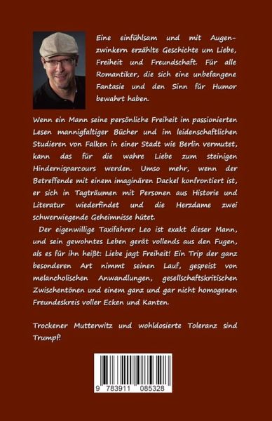 Eine einfühlsam und mit Augenzwinkern erzählte Geschichte um Liebe, Freiheit und Freundschaft. Für alle Romantiker, die sich eine unbefangene Fantasie und den Sinn für Humor bewahrt haben.Wenn ein Mann seine persönliche Freiheit im passionierten Lesen mannigfaltiger Bücher und im leidenschaftlichen Studieren von Falken in einer Stadt wie Berlin vermutet, kann das für die wahre Liebe zum steinigen Hindernisparcours werden. Umso mehr, wenn der Betreffende mit einem imaginären Dackel konfrontiert ist, er sich in Tagträumen mit Personen aus Historie und Literatur wiederfindet und die Herzdame zwei schwerwiegende Geheimnisse hütet.Der eigenwillige Taxifahrer Leo ist exakt dieser Mann, und sein gewohntes Leben gerät vollends aus den Fugen, als es für ihn heißt: Liebe jagt Freiheit! Ein Trip der ganz besonderen Art nimmt seinen Lauf, gespeist von melancholischen Anwandlungen, gesellschaftskritischen Zwischentönen und einem ganz und gar nicht homogenen Freundeskreis voller Ecken und Kanten.Trockener Mutterwitz und wohldosierte Toleranz sind Trumpf!