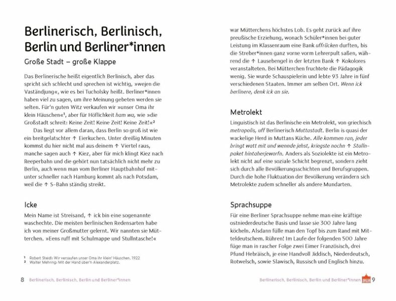 "Das Berlinerische heißt eigentlich Berlinisch, aber das spricht sich schlecht und sprechen ist wichtig, wejen die Vaständjung, wie es bei Tucholsky heißt."Lea Streisand schreibt humorvoll und klug darüber, dass Berlin mit dem Bären nichts zu tun hat, dass das vermeintlich berlinerische Wort Telespargel für den Berliner Fernsehturm Kokolores ist und dass der Vorwurf die Liebeserklärung des Berliners ist: Kannmannichtmeckan! Mit diesem kleinen Sprach- und Kulturführer entdecken Einheimische und Zugereiste die sprachliche Welt Berlins, die Stadt und ihre Menschen neu.