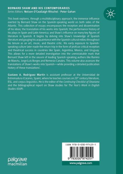 This book explores, through a multidisciplinary approach, the immense influence exerted by Bernard Shaw on the Spanish-speaking world on both sides of the Atlantic. This collection of essays encompasses the reception and dissemination of his ideas; the translation of his works into Spanish; the performance history of his plays in Spain and Latin America; and Shaw's influence on many key figures of literature in Spanish. It begins by delving into Shaw's knowledge of Spanish literature and gauging his acquaintance with the Spanish cultural milieu throughout his tenure as an art, music, and theatre critic. His early exposure to Spanish-speaking culture later made the return trip in the form of profuse critical reception and theatrical success in countries like Spain, Argentina, Mexico, and Uruguay. This allows for a more detailed investigation into the unmistakable mark that Bernard Shaw left in the oeuvre of leading Spanish-speaking authors like Ramiro de Maeztu, Jorge Luis Borges or Nemesio Canales. This volume also assesses the translations of Shaw's works into Spanish-while also providing a detailed publication history of these translations.