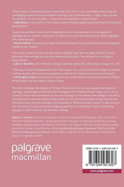 This book combines the insights of thirteen Shavian scholars as they examine the themes of marriage, relationships and partnerships throughout all of Bernard Shaw's major works. It also connects Shaw's own experiences of love and marriage to the themes that emerge in his works, showing how his personal relationships in and out of matrimonial bonds change the ways his characters enter and exit marriages and misalliances. While providing a wealth of new analysis, this collection of essays also leaves lingering questions for the reader to spark continuing dialogue in both individual and academic settings.