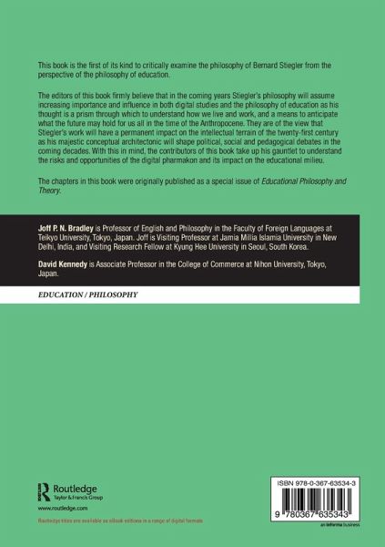 This book is the first of its kind to critically examine the philosophy of Bernard Stiegler from the perspective of the philosophy of education. The editors of this book firmly believe that in the coming years Stiegler's philosophy will assume increasing importance and influence in both digital studies and the philosophy of education as his thought is a prism through which to understand how we live and work, and a means to anticipate what the future may hold for us all in the time of the Anthropocene. They are of the view that Stiegler's work will have a permanent impact on the intellectual terrain of the twenty-first century as his majestic conceptual architectonic will shape political, social and pedagogical debates in the coming decades. With this in mind, the contributors of this book take up his gauntlet to understand the risks and opportunities of the digital pharmakon and its impact on the educational milieu. The chapters in this book were originally published as a special issue of Educational Philosophy and Theory.
