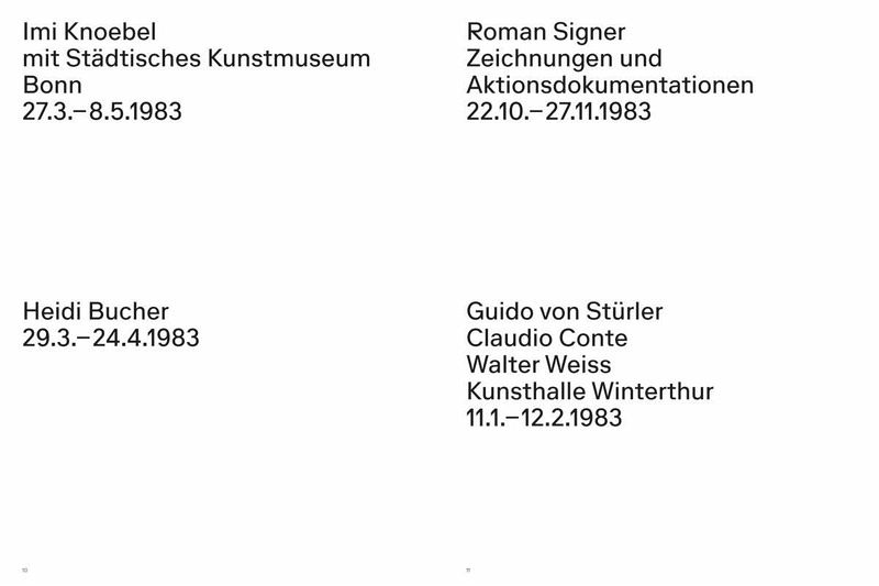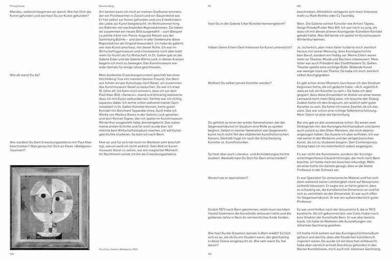 Die Publikation präsentiert das über dreißigjährige kuratorische Schaffen von Bernhard Mendes Bürgi. Der Fokus liegt auf einem typografisch großzügig gestalteten Verzeichnis aller 110 Ausstellungen, die Bürgi insbesondere als Direktor der Kunsthalle Zürich und des Kunstmuseums Basel verantwortete. Ergänzt wird es durch zahlreiche Installationsansichten. Ein ausführliches Gespräch mit Philipp Kaiser erhellt Bürgis kuratorische Leitideen und kontextualisiert sie im jeweiligen Zeitgeschehen. Dabei wird der besondere Stellenwert der «idealen Einzelausstellung» ersichtlich, die stets aufs Neue aus einer engen Zusammenarbeit mit der jeweiligen Künstlerin, dem jeweiligen Künstler hervorgeht.