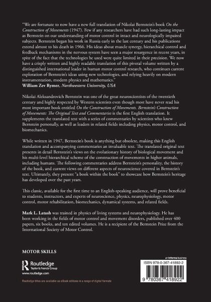 "We are fortunate to now have a new full translation of Nikolai Bernstein's book On the Construction of Movements (1947). Few if any researchers have had such long-lasting impact as Bernstein on our understanding of motor control in intact and neurologically impaired subjects. Bernstein began his work in Russia early in the last century and his publications extend almost to his death in 1966. His ideas about muscle synergy, hierarchical control and feedback mechanisms in the nervous system have seen a major resurgence in recent years, in spite of the fact that the technologies he used were quite limited in their precision. We now have a crisply written and highly readable translation of this pivotal volume written by a distinguished international leader in human motor control research, who continues current exploration of Bernstein's ideas using new technologies, and relying heavily on modern instrumentation, modern physics and mathematics." -William Zev Rymer, Northwestern University, USA