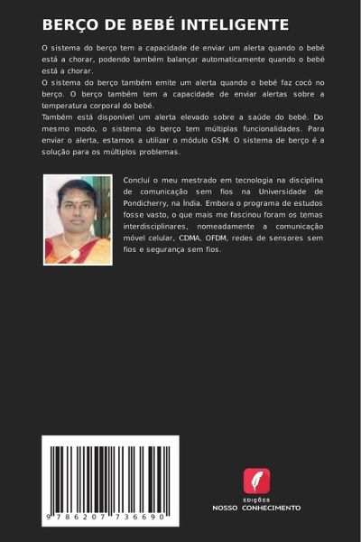 O sistema do berço tem a capacidade de enviar um alerta quando o bebé está a chorar, podendo também balançar automaticamente quando o bebé está a chorar.O sistema do berço também emite um alerta quando o bebé faz cocó no berço. O berço também tem a capacidade de enviar alertas sobre a temperatura corporal do bebé.Também está disponível um alerta elevado sobre a saúde do bebé. Do mesmo modo, o sistema do berço tem múltiplas funcionalidades. Para enviar o alerta, estamos a utilizar o módulo GSM. O sistema de berço é a solução para os múltiplos problemas.