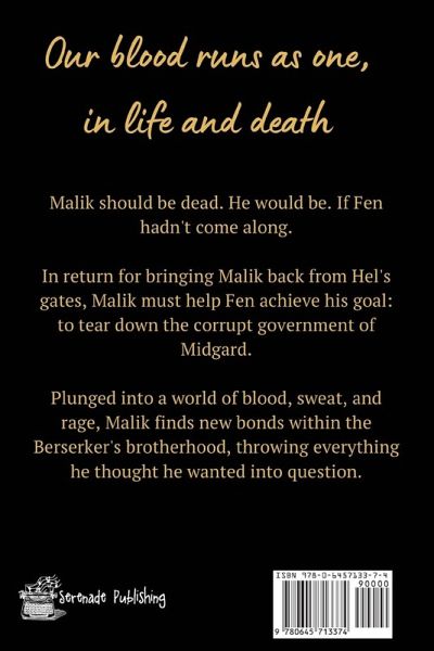 Our blood runs as one, in life and death... Malik should be dead. He would be. If Fen hadn't come along. In return for bringing Malik back from Hel's gates, Malik must help Fen achieve his goal: to tear down the corrupt government of Midgard. Plunged into a world of blood, sweat, and rage, Malik finds new bonds within the Berserker's brotherhood, throwing everything he thought he wanted into question.