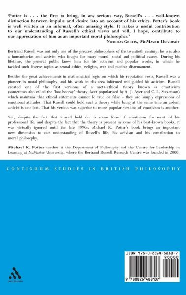 Bertrand Russell was not only one of the greatest philosophers of the twentieth century; he was also a humanitarian and activist who fought for many moral, social, and political causes. During his lifetime, the general public knew him for his activism and popular works, in which he tackled such diverse topics as sexual ethics, religion, war, and nuclear disarmament. Besides the great achievements in mathematical logic on which his reputation rests, Russell was a pioneer in moral philosophy, and his work in this area informed and guided his activism. Russell created one of the first versions of a meta-ethical theory known as emotivism (sometimes also called the 'boo-hooray' theory, later popularized by A.J. Ayer and C.L. Stevenson) which maintains that ethical statements cannot be true or false - they are simply expressions of emotional attitudes. That Russell could hold such a theory while being at the same time an ardent activist is one feat. That his version was superior to more popular versions of emotivism is another. Yet, despite the fact that Russell held on to some form of emotivism for most of his professional life, and despite the fact that the theory is present in some of his best-known books, it was virtually ignored until the late 1990s. Michael K. Potter's book brings an important new dimension to our understanding of Russell's life, his activism, and his contribution to moral philosophy.