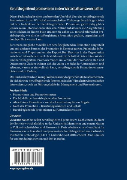 Das Buch richtet sich an Young Professionals und angehende Masterabsolvierende, die sich für eine berufsbegleitende Promotion in den Wirtschaftswissenschaften interessieren, sowie an Führungskräfte im Management und Personalwesen.