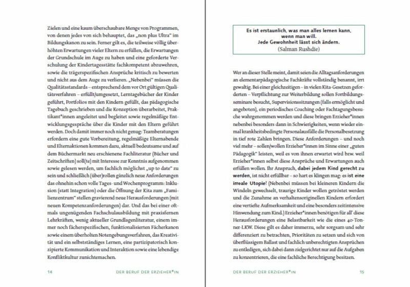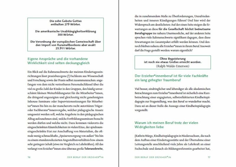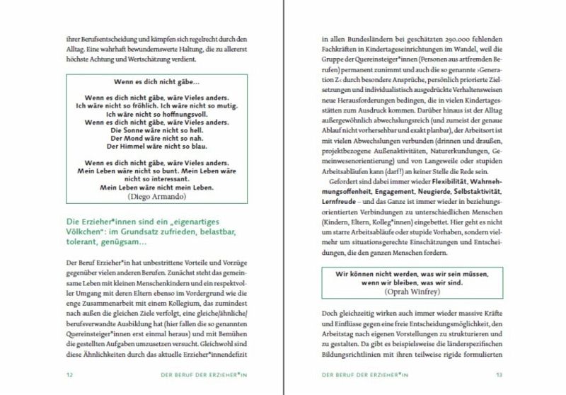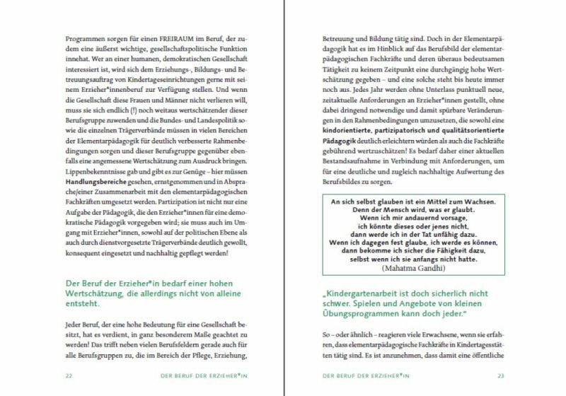 Der Beruf ERZIEHER_IN ist in seinem gesellschaftlichen und sozialpädagogischen Bedeutungswert nicht hoch genug einzuschätzen, ist es doch gerade die Berufsgruppe der Erzieher_innen, die neben den Eltern und anderen erziehungsberechtigten Personen einen sehr großen Einfluss auf das Entwicklungsgeschehen bei Kindern haben. So besuchen von Jahr zu Jahr immer mehr Kinder eine Krippe und eine Kindertagesstätte und verbringen einen Großteil ihres Alltags über einige Jahre hinweg in einer elementarpädagogischen Institution. Ergebnisse aus dem Feld der "Resilienzforschung", "Erziehungswissenschaft" und "Neurobiologie" haben deutlich gemacht, dass neben den Eltern auch familienfremde Personen einen entwicklungsförderlichen als auch einen entwicklungshinderlichen Einfluss auf die Persönlichkeitsentwicklung der Kinder haben können.Dieses Buch wendet sich ganz konkret mit folgenden Schwerpunkten dem "Berufsbild der Erzieher_innen" zu:- Der Beruf der Erzieher_in - herausfordernd, spannend, abwechslungsreich und voller Überraschungen- Das Berufsbild Erzieher_in - anspruchsvoll und ausdruckstark- Empfehlungen für eine nachhaltige Bildung, Erziehung und Betreuung, die sich aus dem Berufsbild ergeben- Professionalität ist ein bedeutsamer Aspekt und zugleich eine permanente Herausforderung an Erzieher_innen- Starke Kinder brauchen starke Erzieher_innen, die ihnen Sicherheit und Entwicklungsmöglichkeiten bieten- Grundsatzgedanken zur Bedeutung der Persönlichkeit von Erzieher_innen für entwicklungsförderliche Selbstbildungsprozesse bei Kindern - Die Persönlichkeit der Erzieherin: Dreh- und Angelpunkt jeder "guten" PädagogikSelbstbildung als Herausforderung und Notwendigkeit - Wer bin ich, was kann ich, was bewirke ich?Ziel des Buches ist es einerseits, die wichtigsten berufsspezifischen Grundlagen für eine professionelle Elementarpädagogik zusammenzufassen und andererseits künftige Erzieher_innen bzw. schon tätige Erzieher_innen/Kindheitspädagog_innen auf bedeutsame, basale Herausforderungen aufmerksam zu machen, damit der gesetzlich verankerte Erziehungs-, Bildungs- und Betreuungsauftrag unter Beachtung der jeweils länderspezifischen Bildungsrichtlinien, der UN-Charta "Rechte des Kindes" sowie der grundlegenden Ausgangsdaten aus den Feldern der Bildungs-/Bindungsforschung und Entwicklungspädagogik auch tatsächlich erfüllt werden kann. Damit füllt diese Publikation mit diesen aufeinander aufbauenden und verzahnten Schwerpunkten eine schon seit langer Zeit bestehende Lücke im pädagogischen Literaturangebot.